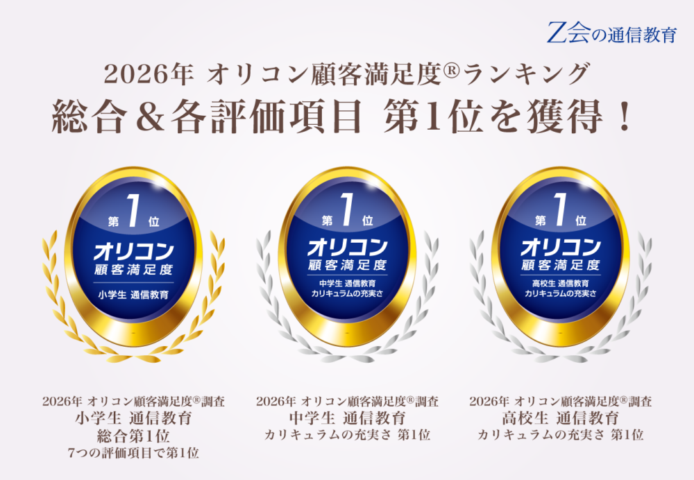 株式会社Z会(本社:静岡県三島市、代表取締役社長:藤井孝昭)は、オリコン株式会社 (本社:東京都港区、代表取締役社長:小池 恒)が2026年1月5日に発表した「オリコン顧客満足度(R)ランキング」の「小学生 通信教育」にて11年連続総合第1位、「中学生 通信教育」にて「カリキュラムの充実さ」「教材・講義」「受講効果」第1位、「高校生 通信教育」にて「カリキュラムの充実さ」「学習フォロー体制」第1位を獲得しました。